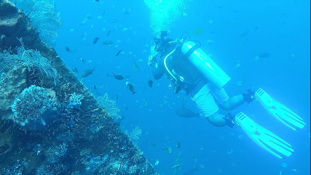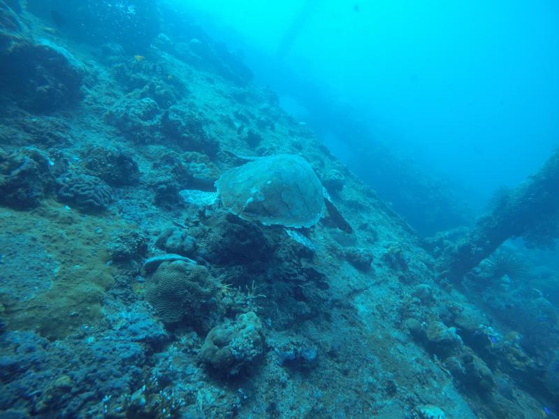 In Padangbai machte ich meinen Anfängertauchschein, den Padi Open Water Diver. Kurz nachdem ich ankam, schaute ich an meiner Tauchschule vorbei. Dort gab man mir bereits ein Buch mit der Theorie. Ich sollte mir gleich mal das erste Kapitel durchlesen. Damit war ich dann für den Rest des ersten Tag auch schon beschäftigt (ca. 80 Seiten). Später suchte ich nur noch nach den Antworten für die Wiederholungsfragen, was auch vollkommen ausreichend war. Abends war ich noch mit zwei Kanadierinnen aus meinem Zimmer essen. Dabei fiel mir auf, dass ich mich nach 5,5 Monaten Australien an den australischen Akzent gewohnt hatte. Am nächsten Morgen um 8:45 ging es dann mit der Tauchschule los. Wir waren eine Gruppe von insgesamt vier Schülern und einem Tauchlehrer. Wir schauten uns nun ein 45 Minuten Video an, in dem alles wichtige vorkam, was ich am Tag davor auf 80 Seiten durchlas. Im Buch stand viel Müll drin, den man sich auch selber denken konnte (z. B. "Die Farbe der Tauchmaske kann man nach seinem eigenen Geschmack auswählen“). Die anderen bekamen erst an diesem Tag das Buch. Später machten wir noch ein Paar Übungen im Pool. Hausaufgabe waren dann die Fragen zu Kapitel zwei und drei. Abends war ich noch etwas Trinken, sodass ich erst um 2 Uhr schlief. Am nächsten Morgen stand ich um kurz vor 7 auf, machte die restlichen Wiederholungsfragen, aß mein Frühstück und war um 8:45 wieder fertig in der Tauchschule. Nach der Besprechung der Theorie machten wir zwei Tauchgänge im Meer. Am Nachmittag ging ich mit einer Deutschen (trifft man dort viele, aber nicht ganz so viele wie in Australien) zu einem nahe gelegenem Strand. Essen konnte man dort gut und günstig, wie überall in Bali. Abends saßen einige Leute vor dem Hostel und spielten Gitarre, was schön war. Am drittem Tag meines Tauchkurses schrieben wir in der Früh die Abschlussprüfung, bei der man fast nicht durchfallen konnte. Anschließend machten wir 2 weitere Tauchgänge und später bekamen wir dann unseren Tauchschein. Am nächsten Tag buchte ich einen Tauchausflug zum Liberty Wreck, zu dem wir von Padangbai aus ca. 1,5 Stunden fuhren. Dort machten wir zwei Tauchgänge, bei denen es viel zu sehen gab.