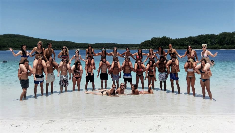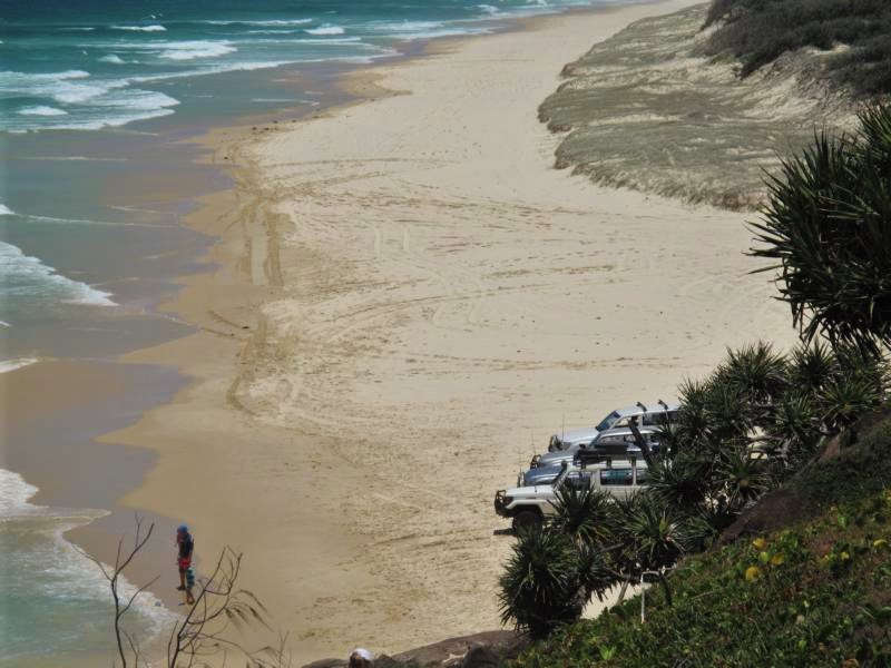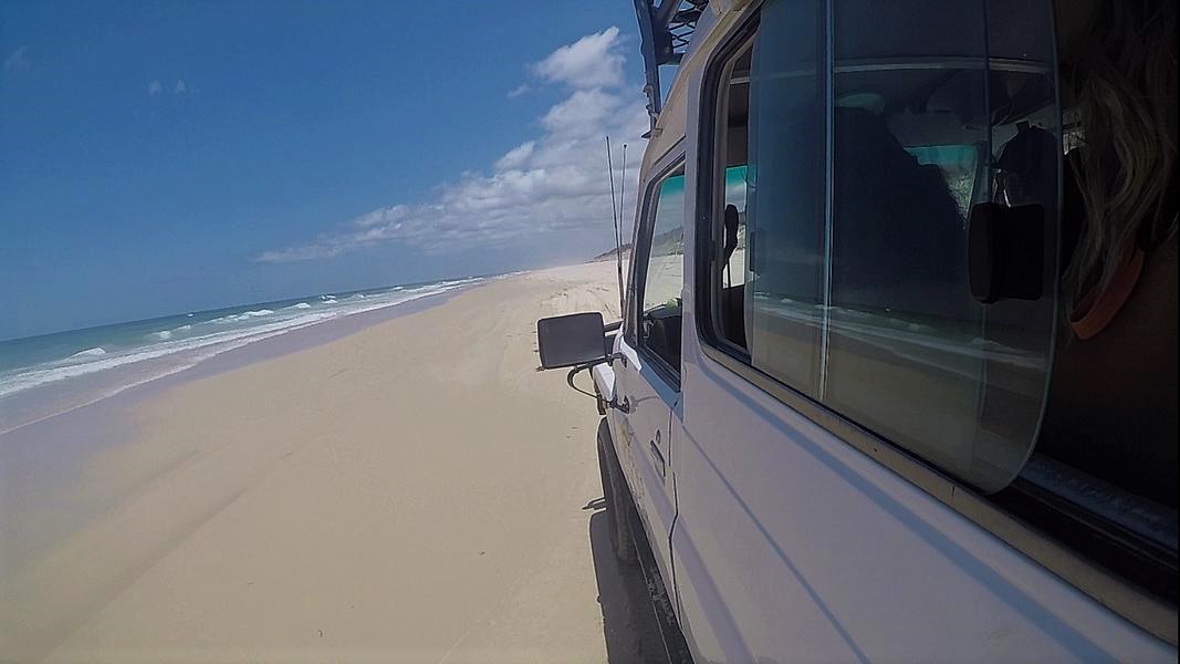 Der Fraser Island Trip ging um 8 Uhr am nächsten Tag los. Wir waren eine Gruppe mit 4 Geländewagen. Fraser Island ist die größte Sandinsel der Welt. Dort kann man mit bis zu 80 km/h am Strand entlang fahren.