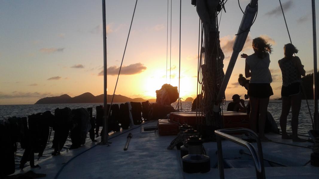 Spaeter gab es Wrapps zum Mittagessen und am Nachmittag ging es noch zweimal Schnorcheln. Abends war es wieder schön (diesmal ging es dann auch etwas länger) und da es auf dunkel war konnte man die Sterne gut sehen. Am nächsten Morgen ging es noch einmal kurz Schnorcheln, bevor wir wieder zurück zum Hafen von Airlie Beach segelten.