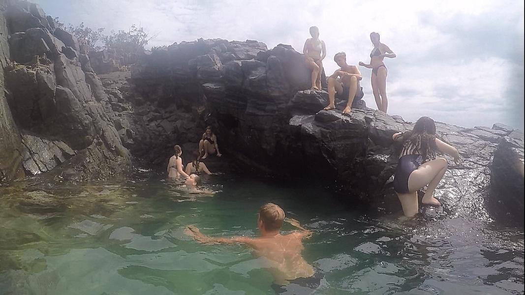 In Airlie Beach übernachtete ich im Global Hostel, dass zwar eher mäßig war, aber man bekam 50% Rabatt auf das Essen in der dazugehörenden Bar Namens Beaches. Bei einem 300 Gramm Rumpsteak für 7,5 Aud kann man sich dann nicht beschweren. Beim Essen traf ich noch einen Typen, der in Mission Beach im gleichem Hostel (auch drei Leute, die in Port Douglas im gleichen Hostel waren) wie ich war, wieder. Abends spielten wir noch etwas Karten. In der Stadt, waren überall die Schoolies (Leute, die gerade mit der Schule fertig sind und danach Party machen, aber meist nichts trinken duerfen, weil die meistens noch keine 18 sind.) Am nächsten Tag war ich noch an der Lagune. Der Ort ist wieder sehr touristisch, aber auch schön.