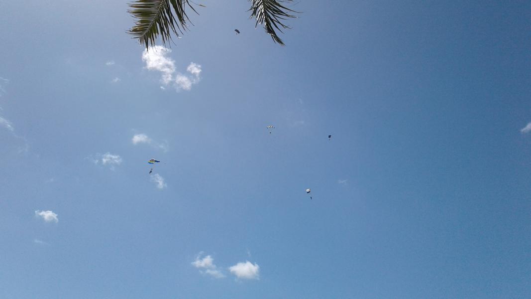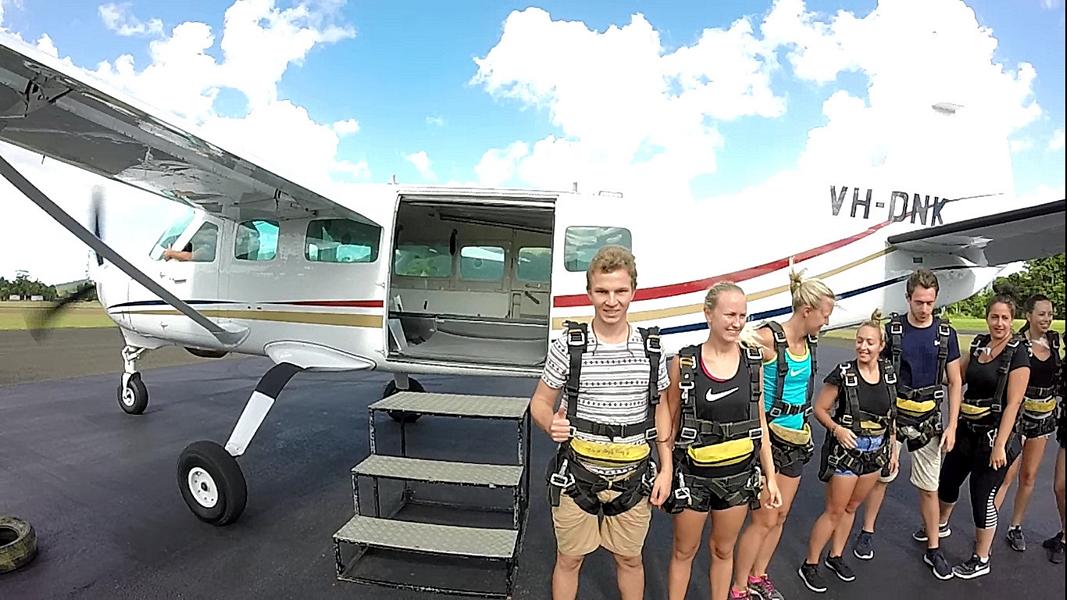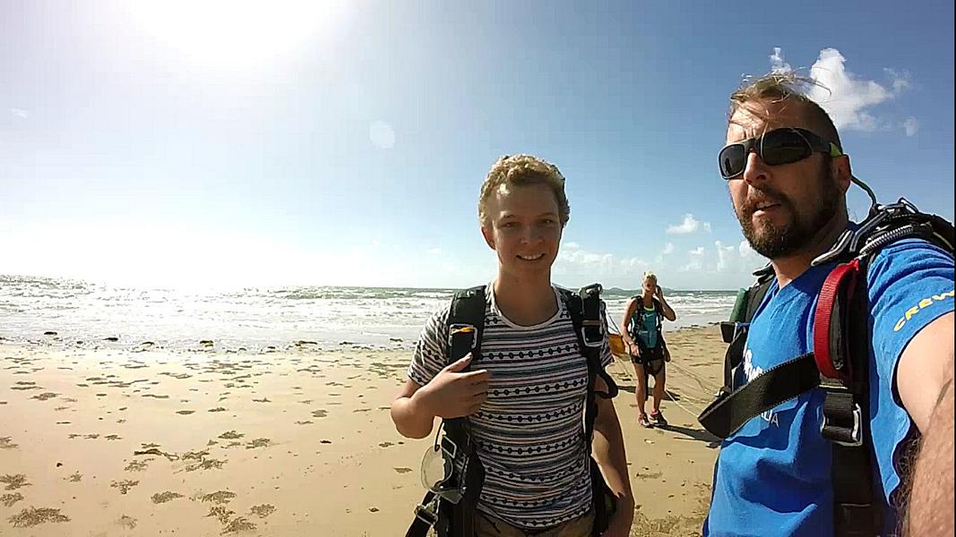 Nachdem ich wieder meine australische Bankkarte und ein neues Handy hatte, reiste ich die Ostkueste herunter. Mein erster Stopp war Mission Beach, ein kleiner Ort mit schönem Strand (wie fast überall). Viele Leute gehen dort zum Fallschirmspringen hin, so auch ich. Am Tag zuvor war das Wetter sehr unsicher gemeldet, weshalb ich mir etwas Sorgen machte, ob ich überhaupt springen konnte. Am nächsten Morgen war das Wetter aber optimal und so wurde ich um 7 Uhr in der Früh an meinem Hostel von dem Shuttlebus abgeholt. Vor dem Sprung war ich erstaunlich ruhig, aber als dann die ersten aus dem Flugzeug sprangen und plötzlich weg waren stieg dann doch der Puls. Vor allem am Anfang, wenn man beschleunigt, merkt man die Geschwindigkeit. Nach ein paar Sekunden kommt es einem allerdings gar nicht mehr so schnell vor, was wohl daran liegt, dass man keinen richtigen Bezugspunkt hat. Der Wind war aber richtig heftig, was man auch bei meinem Video sehr gut an meinem Gesicht sehen kann(der Tandemmaster wusste wohl, weshalb er seinen Mund die meiste Zeit geschlossen hielt). Eigentlich wollte ich mir die 119 AUD für das Video sparen, als ich dann aber am Tag zuvor bei zwei Anderen das Video gesehen hatte, buchte ich es dann doch dazu. (ist unter Videos auf meiner Website). Mich hat es etwas geärgert, dass man bei der Landung nur das T-shirt meines Tandemmasters sieht, aber trotzdem würde ich es wieder buchen. Danach gab es dann Frühstück, was bei den 255 AUD im Preis mit eingeschlossen war. Dann schauten wir noch kurz die Landung der nächsten Gruppe an.